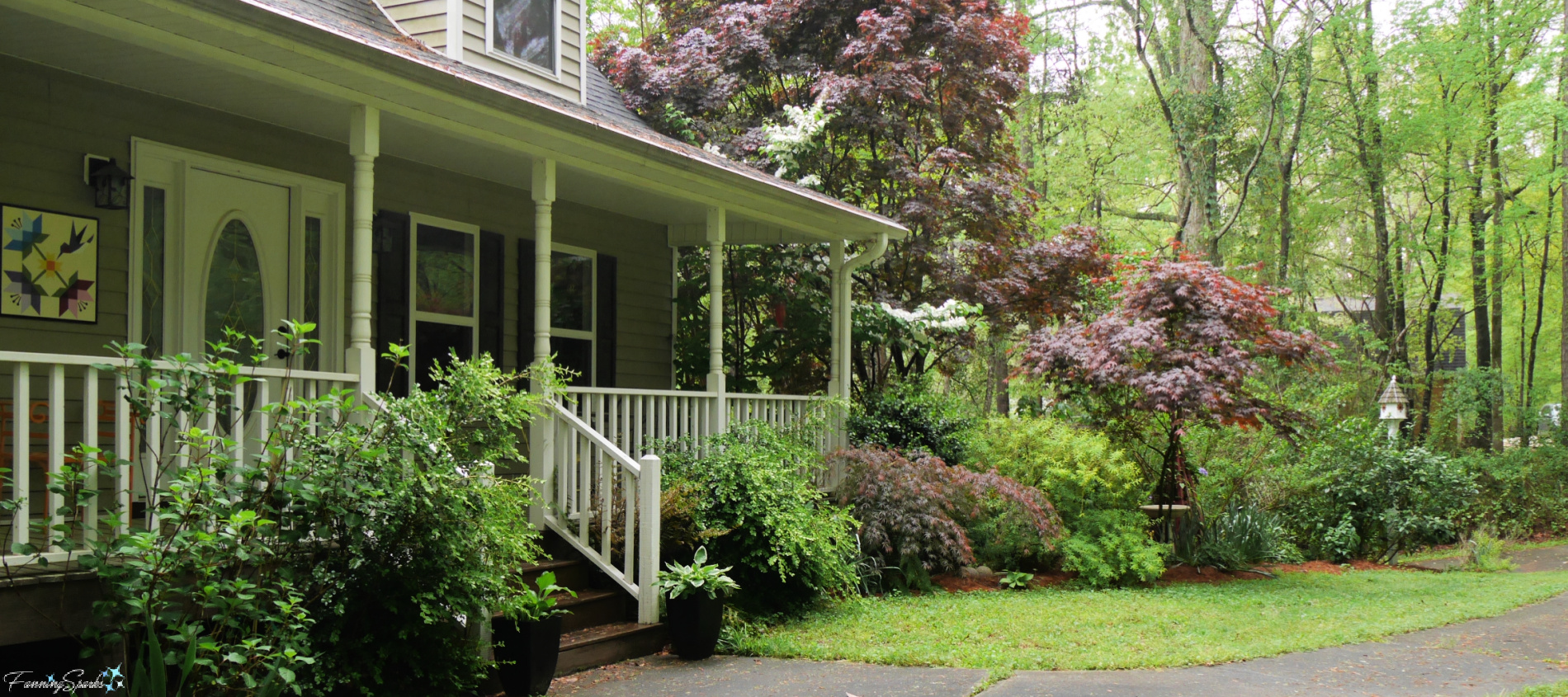 It’s obviously the same house ― but with better landscaping! A variety of new plants, shrubs and trees, along with countless hours of digging, planting and nurturing, went into creating the lush, decorative gardens we left behind.