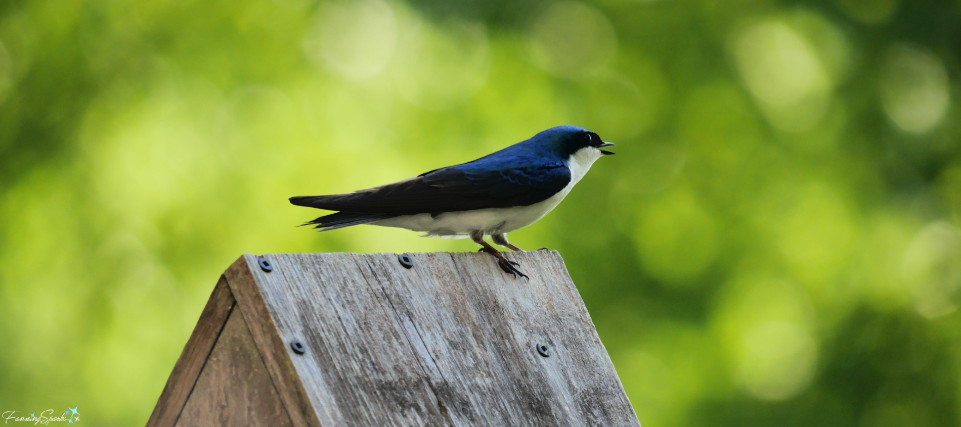The All About Birds website, from the Cornell Lab of Ornithology, describes tree swallows this way ― “Handsome aerialists with deep-blue iridescent backs and clean white fronts, Tree Swallows are a familiar sight in summer fields and wetlands across northern North America. They chase after flying insects with acrobatic twists and turns, their steely blue-green feathers flashing in the sunlight. Tree Swallows nest in tree cavities; they also readily take up residence in nest boxes. This habit has allowed scientists to study their breeding biology in detail, and makes them a great addition to many a homeowner’s yard or field.”